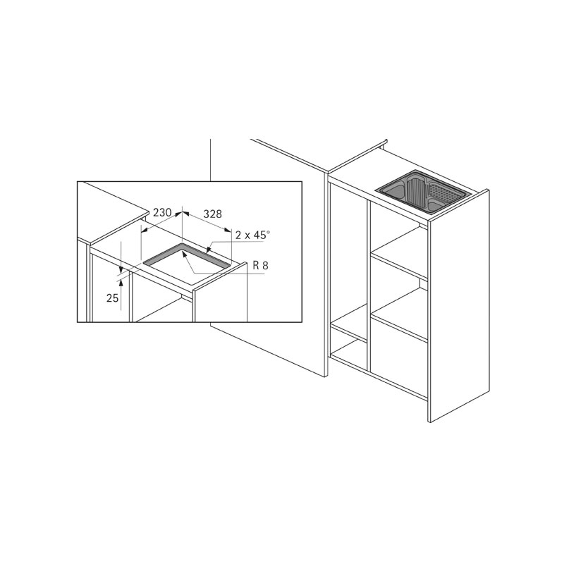 A encastrer ou à poser directement sur un tiroir métal largeur 370 mm.