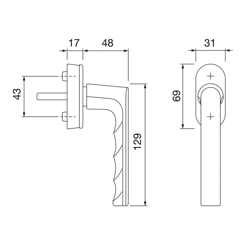 Poignée pour fenêtre à ouverture à la française et oscillo-battante. Carré et visserie fournis.