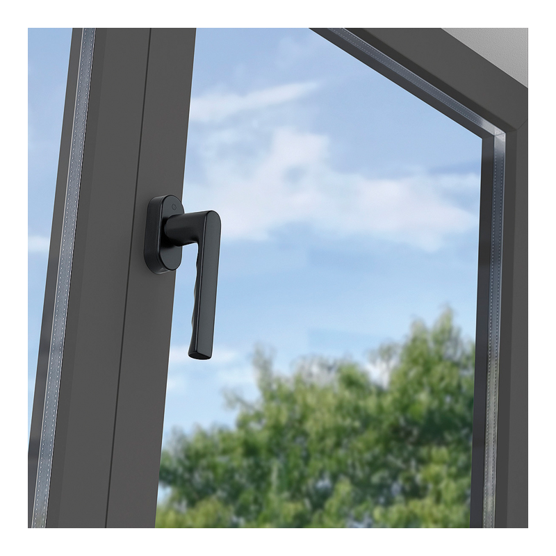 Système SecuForte HOPPE. Simple, différent, plus sûr. Tout nouveau standard en matière de résistance à l'effraction : protège contre les effractions par déplacement de la ferrure, percement de la vitre au niveau du joint d'étanchéité ou du profil.