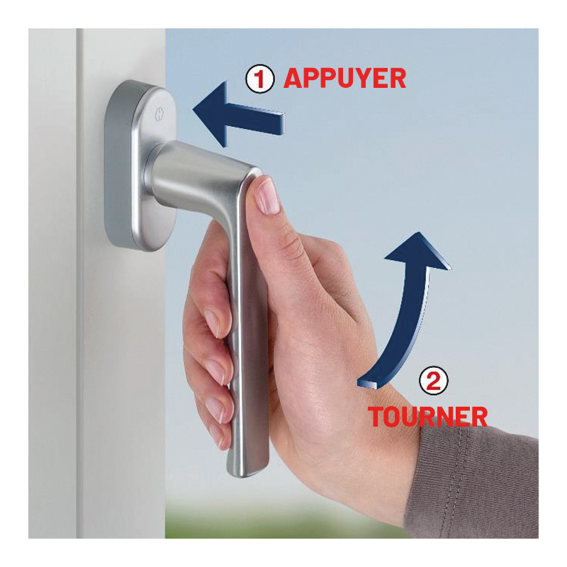 * système SecuForte (la poignée et le carré sont découplés et lapoignée est automatiquement verrouillée, grâce au principe de sécurité "Appuyer puis tourner")