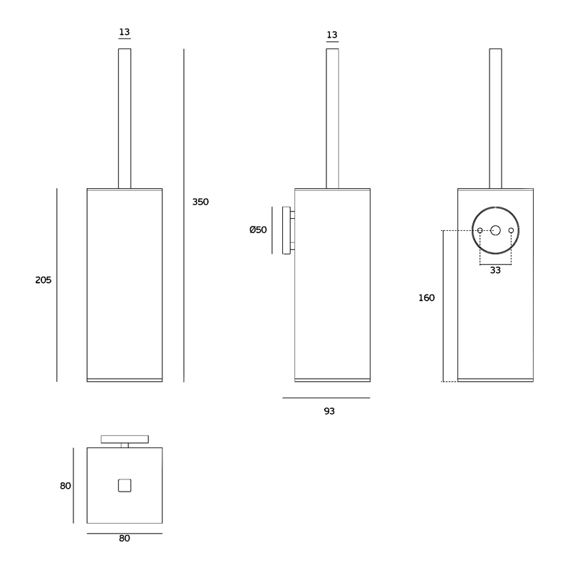 Porte balai WC de forme carrée en inox AISI304 noir RAL 9005.