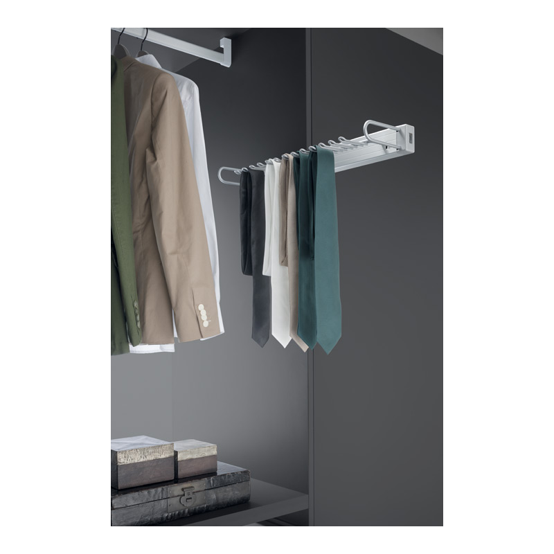 Ce porte-ceintures et cravates de marque Vibo permet un rangement optimal de vos ceintures et cravates et est destiné au dressing de la gamme Elite. Il peut recevoir 13 ceintures ou cravates.