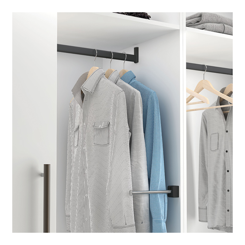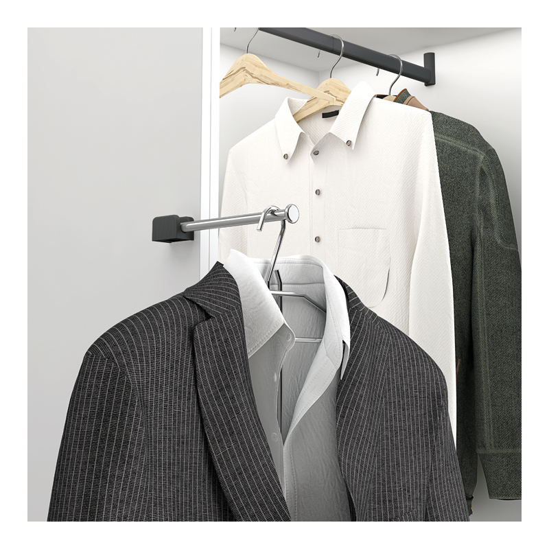 - Selon la platine utilisée, le porte cintre est relevable ou coulissant