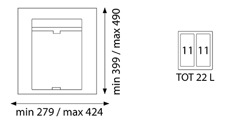Cette poubelle pour tiroir dispose de 2 bacs de 11L.