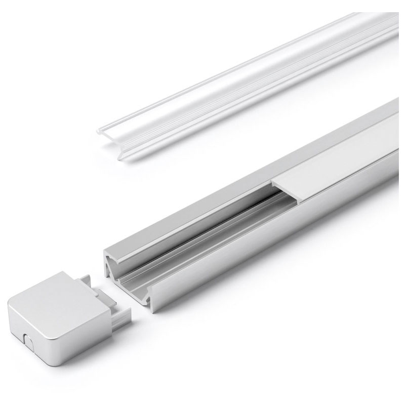 Profil aluminium pour pose encastré ou en applique. Livré avec diffuseur translucide. Décor argent. Peut recevoir une ou deux bandes led largeur 7,5 et 8mm.