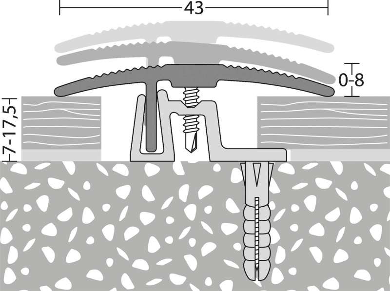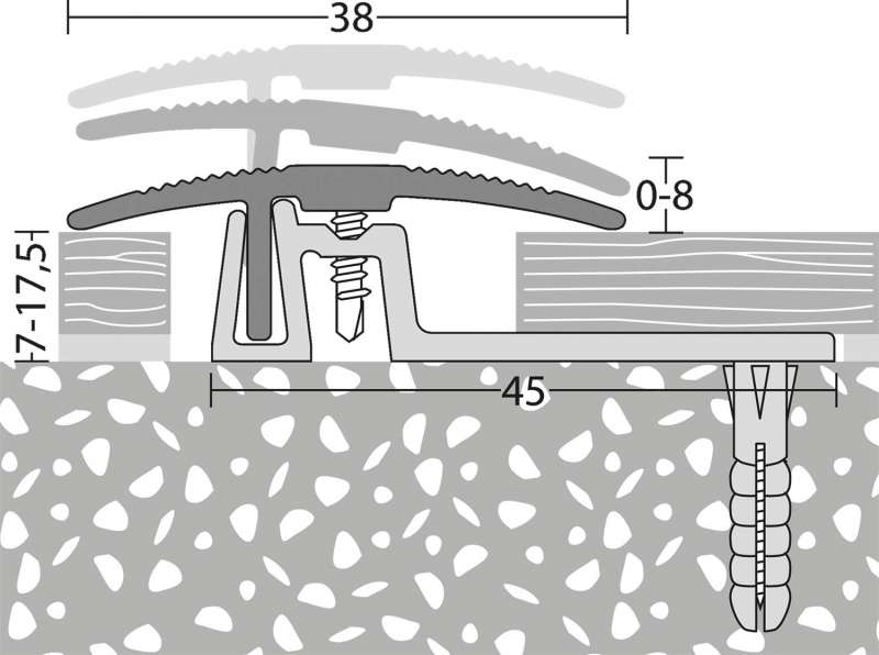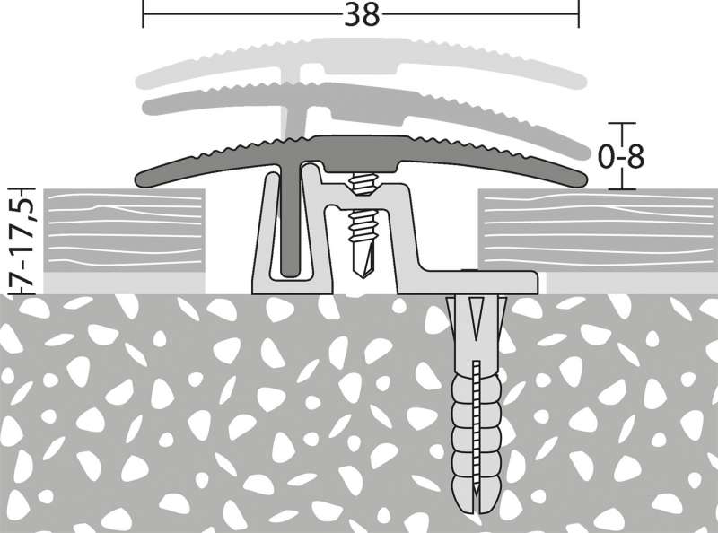 Profil strié permettant la jonction entre deux sols de même hauteur ou différentes (de 0 à 17,5 mm).