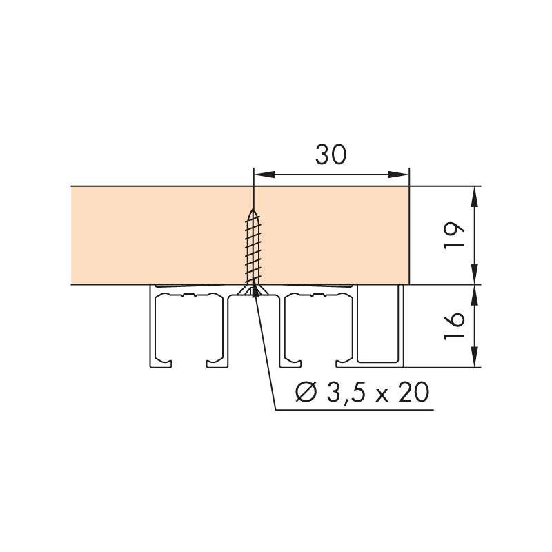 Rail de roulement double Clipo 16 H en applique 30743 30743 HAWA