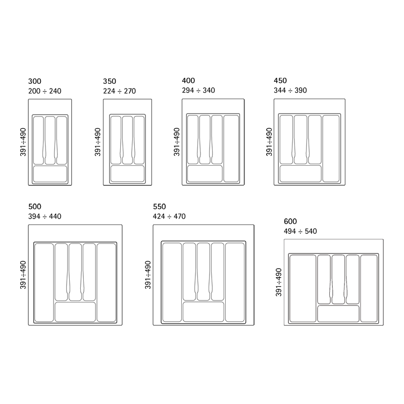 Ce ramasse-couverts de marque Volpato, en PVC blanc et est recoupable, s'ajuste parfaitement à vos tiroirs.