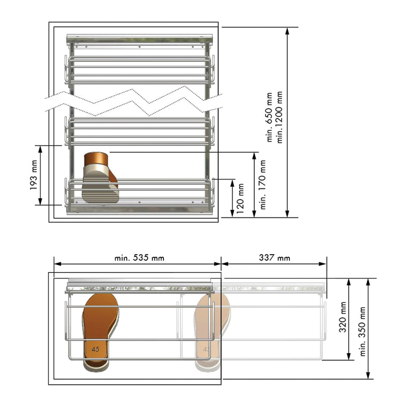 Range chaussures coulissant en fil d'acier.
