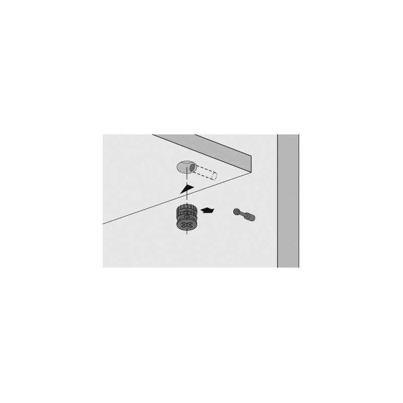 - Le goujon est toujours resserré de manière centrée, tout décalage de la partie de meuble est donc exclu