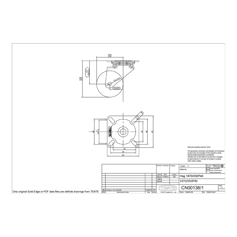 Roulette pivotante Ø50 sur platine de marque TENTE