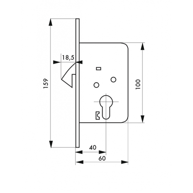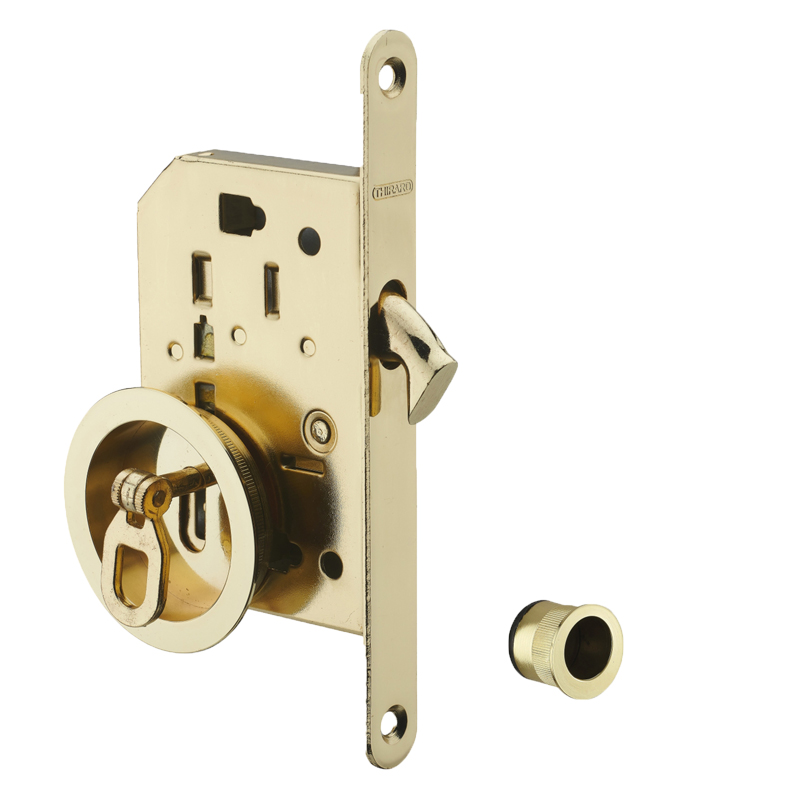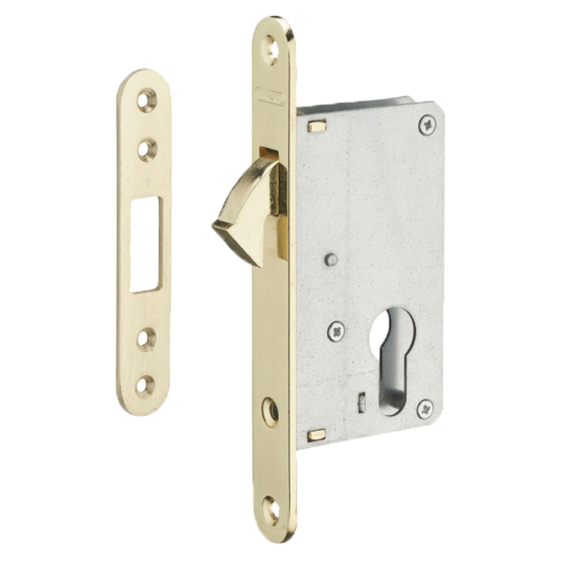Serrure à larder avec pêne crochet, pour porte coulissante.