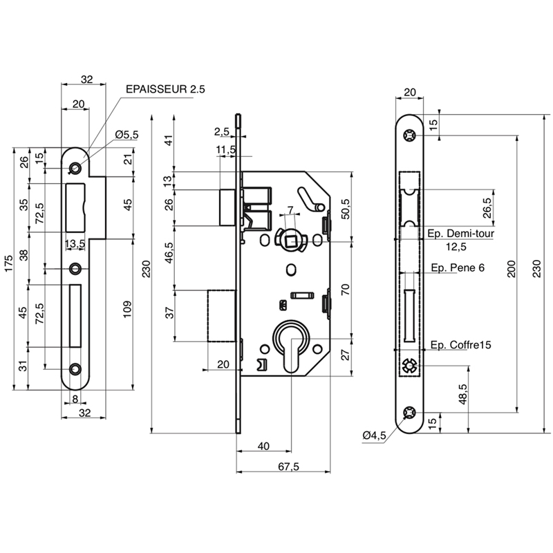 Serrure à larder axe 40 - NF Monomax 65121 65121 THIRARD