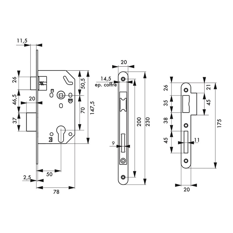 Serrure à larder axe 50 9850 9850 THIRARD