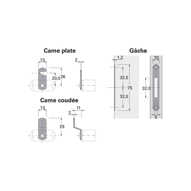 • Egalement livré avec une gâche plate 75 x 10 mm