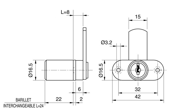 Cylindre Ø 16,5 mm, longueur 24 mm.