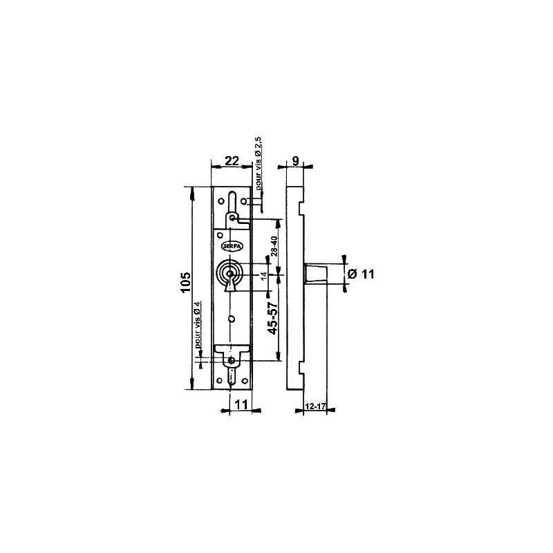 Serrure haute et basse encloisonnée 2876 2876 SERFA