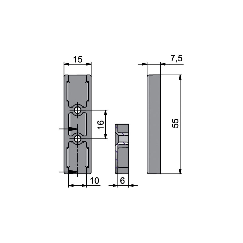 - Gâche de contre porte plastique noir hauteur 55 mm, largeur 15 mm, épaisseur 7,5 mm