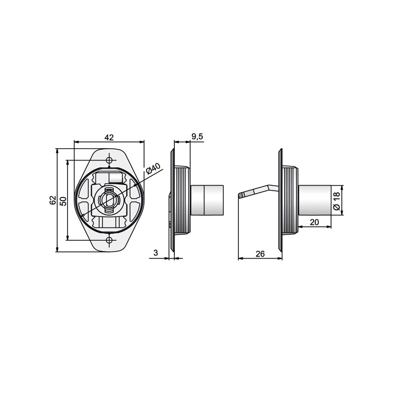 - Encastrement diamètre 40, profondeur 9,5