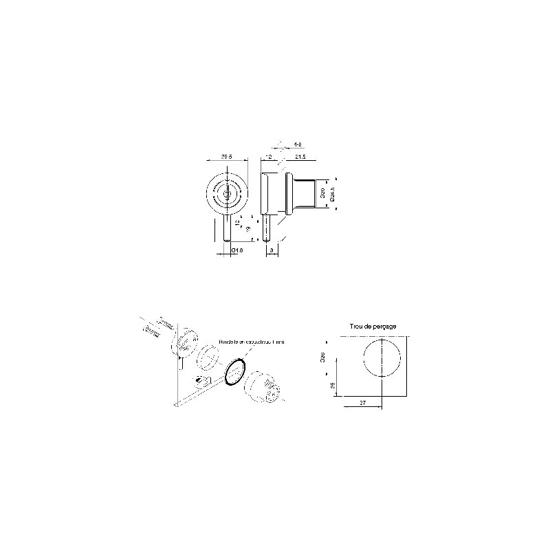 Pour son installation, vous devez prévoir un perçage de 26 mm de diamètre dans du verre.