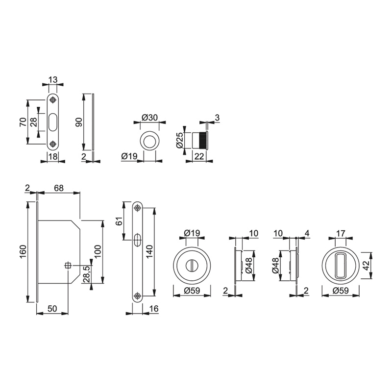 - Pour porte coulissante d'intérieur en bois