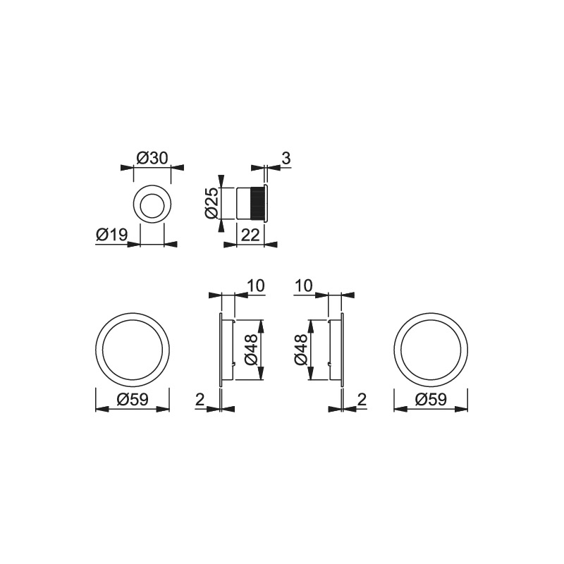 C) Poignée cuvettes : Livrée avec doigt de tirage.