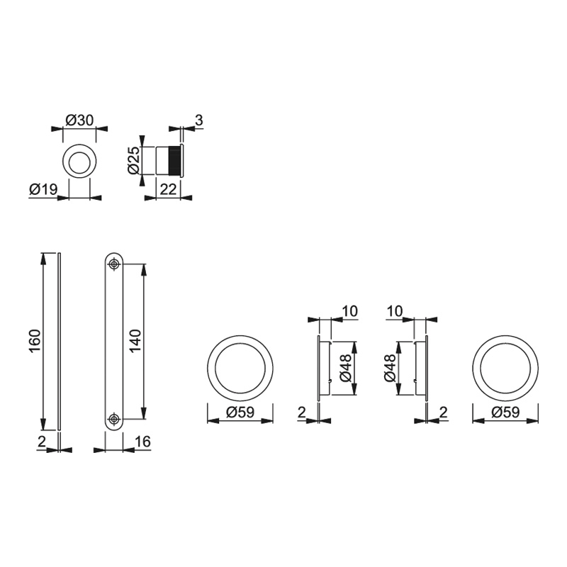 Pour porte épaisseur 38 à 48 mm.