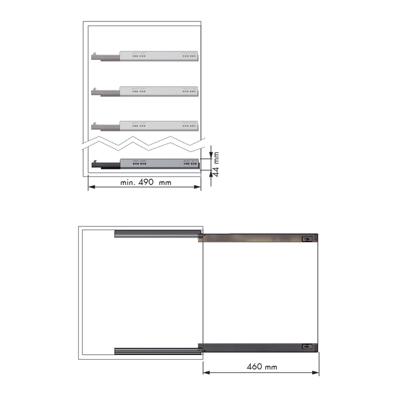 Supports pour tablette mélaminé d'épaisseur 16/19mm, sur coulisses Quadro Hettich avec extraction totale et amortisseur.