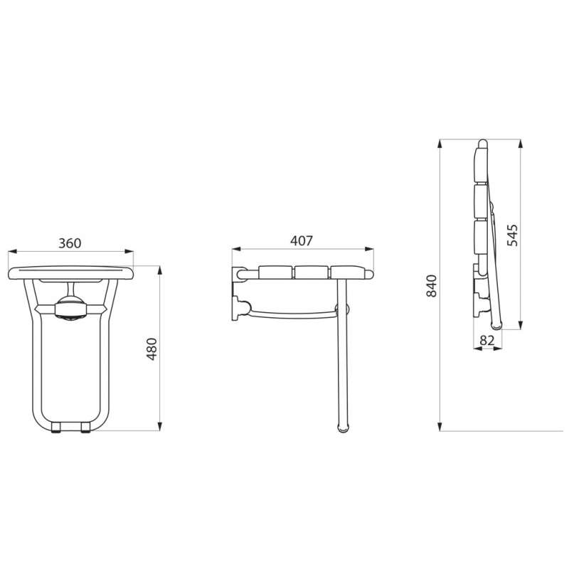 Siège de douche relevable avec pied.