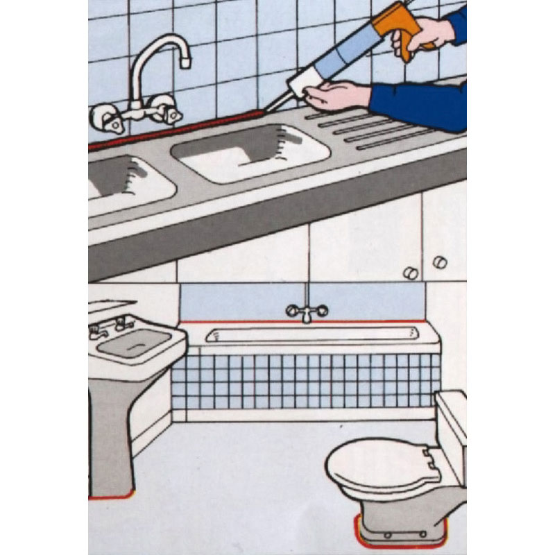 - Pour joints étanches d'installations sanitaires : lavabos, douches, éviers, plans de travail...
