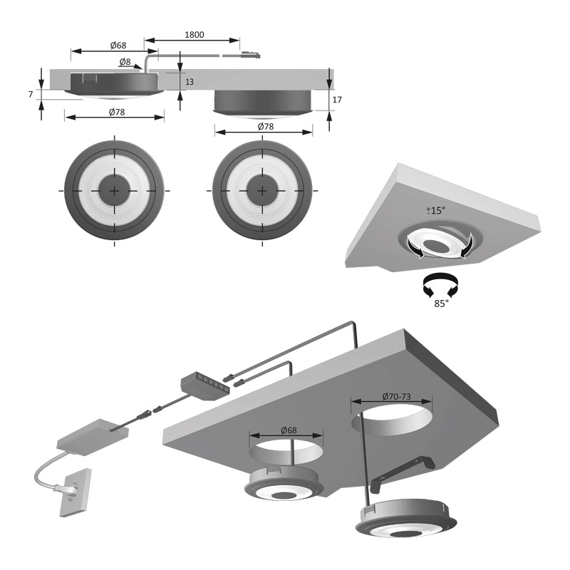 | Encastrement | Ø 68 x 13 mm |