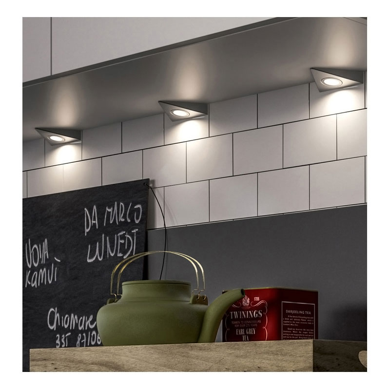 Ce spot LED triangulaire de marque VOKIL vous permet d'avoir un éclairage puissant, homogène et non éblouissant. Il peut être posé en applique sous un meuble haut ou sous tablette.