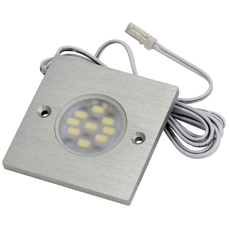 Pour vous permettre d’avoir un éclairage homogène et de qualité, nous vous proposons ce spot LED carré (60 x 60 mm) extra-plat de marque SC Herrajes. Il est alimenté en 12 V et a une puissance de 3 W.