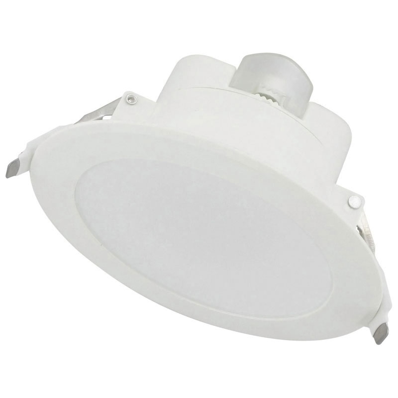 Ce spot LED de plafond fixe conçu en PVC diffuse une lumière puissante et douce. Un raccordement secteur suffit pour ce modèle monobloc à grande surface de diffusion.