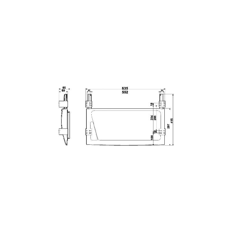 - Dimensions hors tout (Largeur x Hauteur x Profondeur) : 635 x 89 x 415 mm