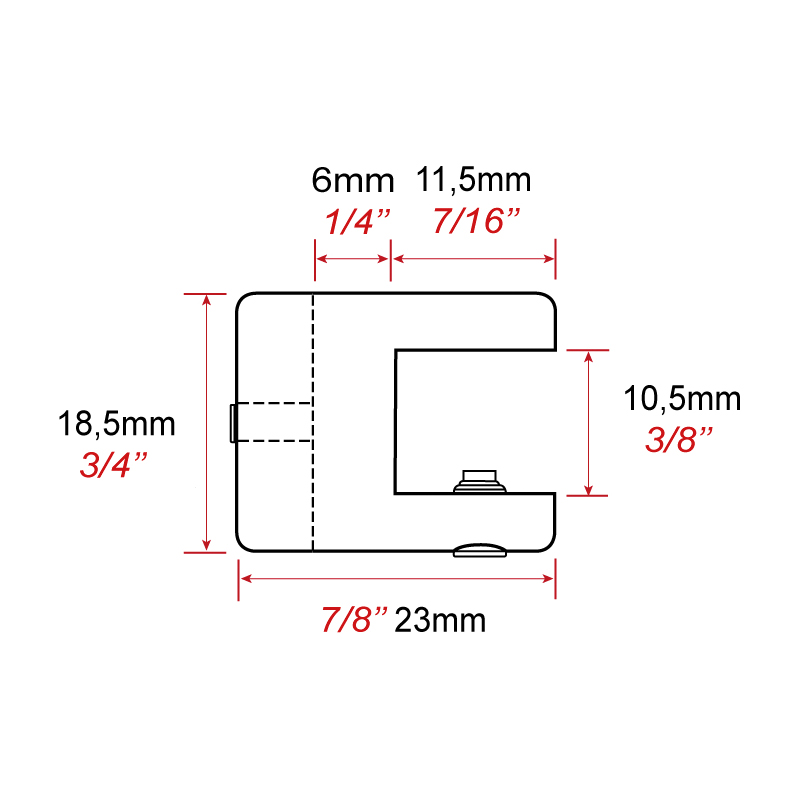 Support Ø 18,5 mm pour pose d'une tablette d'épaisseur maxi 10 mm.