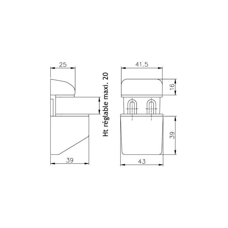 Pour tablettes verre ou bois de 5 à 20 mm.
