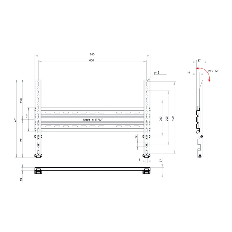 Livré avec fixations, VESA 200 x 200 à 600 x 400 et niveau à bulle (pour faciliter l'installation).