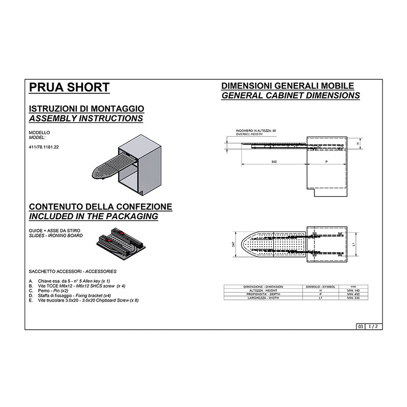 Table à repasser escamotable Prua Short 69636 69636 ATIM