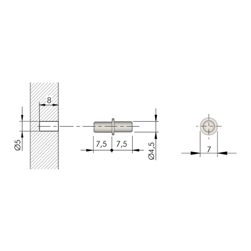 Taquet DUPLO Ø5/5 en acier, longueur 16.