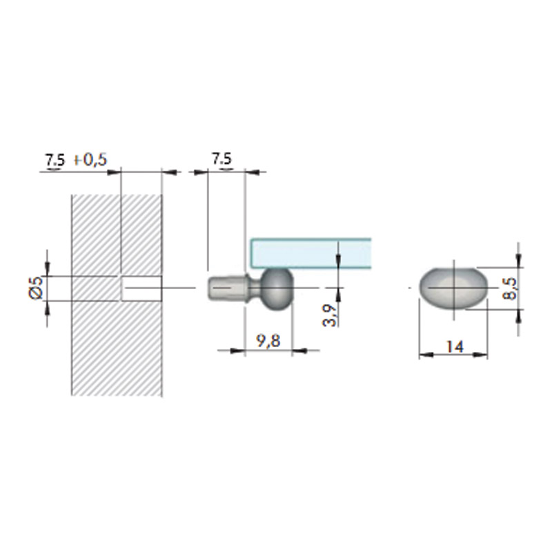Taquet zamack avec antidérapant noir. Longueur 17,5.