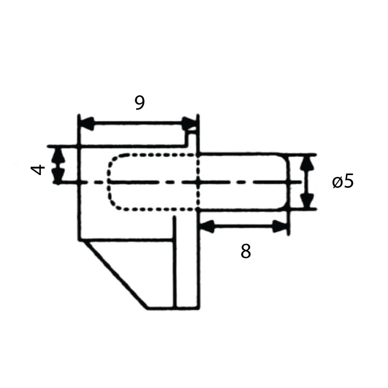 Taquet PVC sur tourillon métal Ø5.