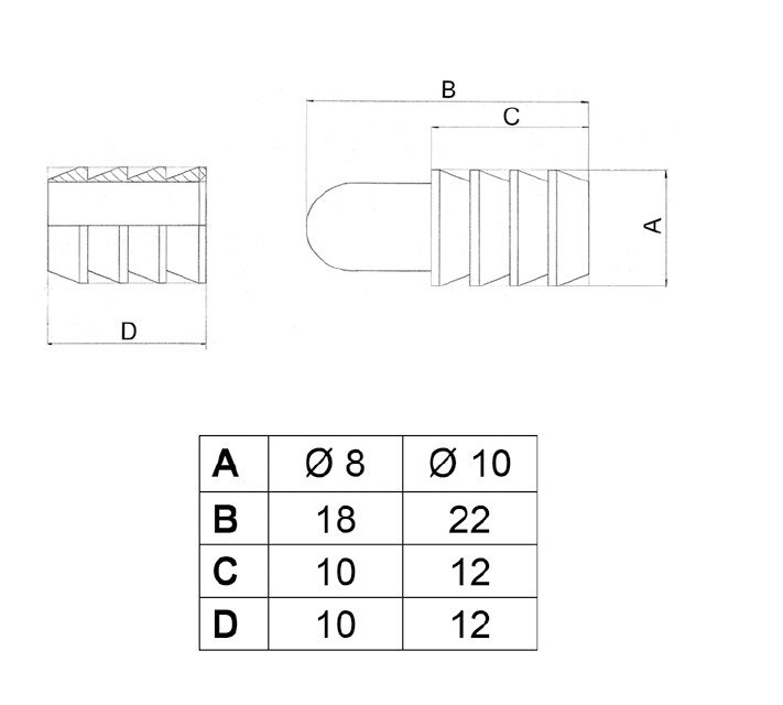Tourillon et douille - Pour allonge de table 2512 2512 ITAR