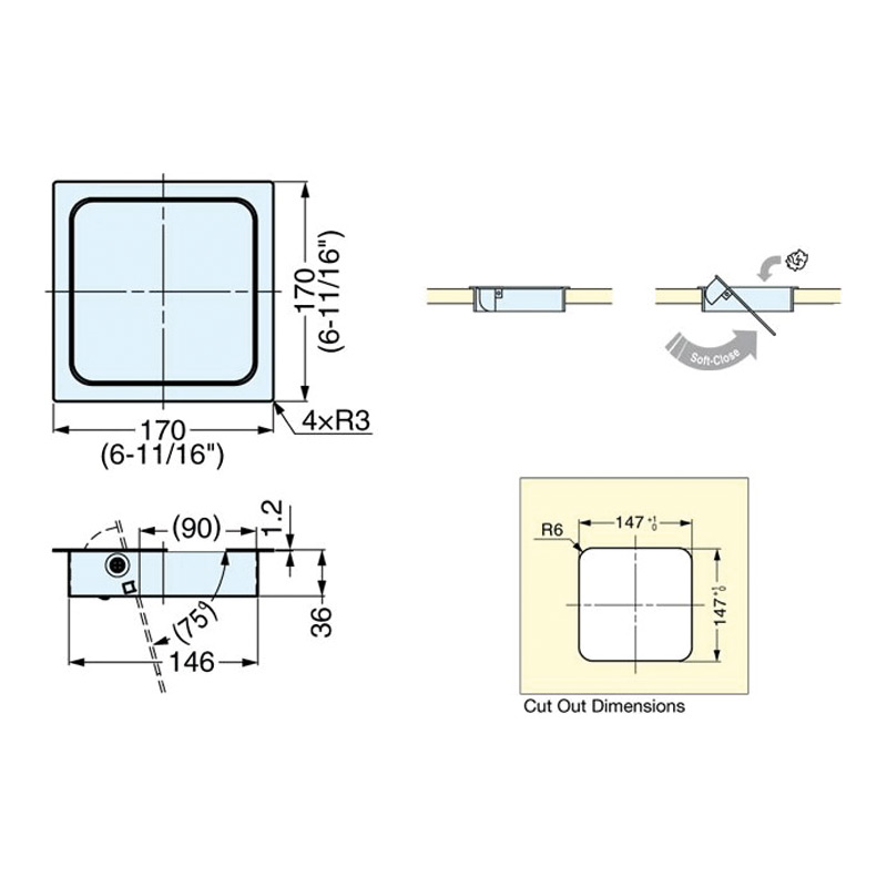 Trappe carrée de poubelle pour plan de travail de marque SUGATSUNE