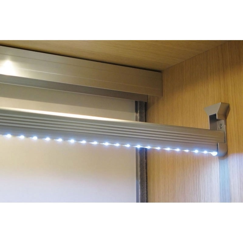 - 1 tube de penderie 35x15 longueur 1000 en aluminium anodisé argent avec rainure latérale pouvant être habillée par un chant mince largeur 24 et un joint antibruit gris