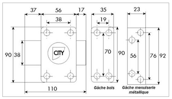 • Autre dimension ou verrou avec cylindre double, nous consulter
