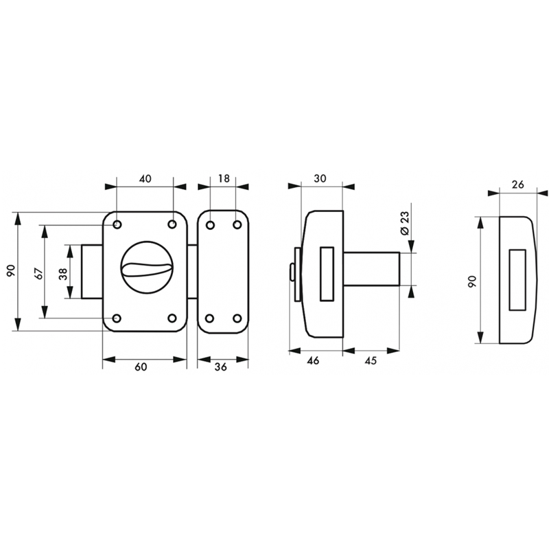 Boitier 60 x 90mm et gâche 36 x 90mm en acier embouti.
