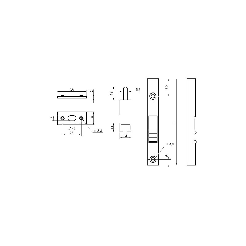 Verrou tube à entailler avec gâche acier zingué.