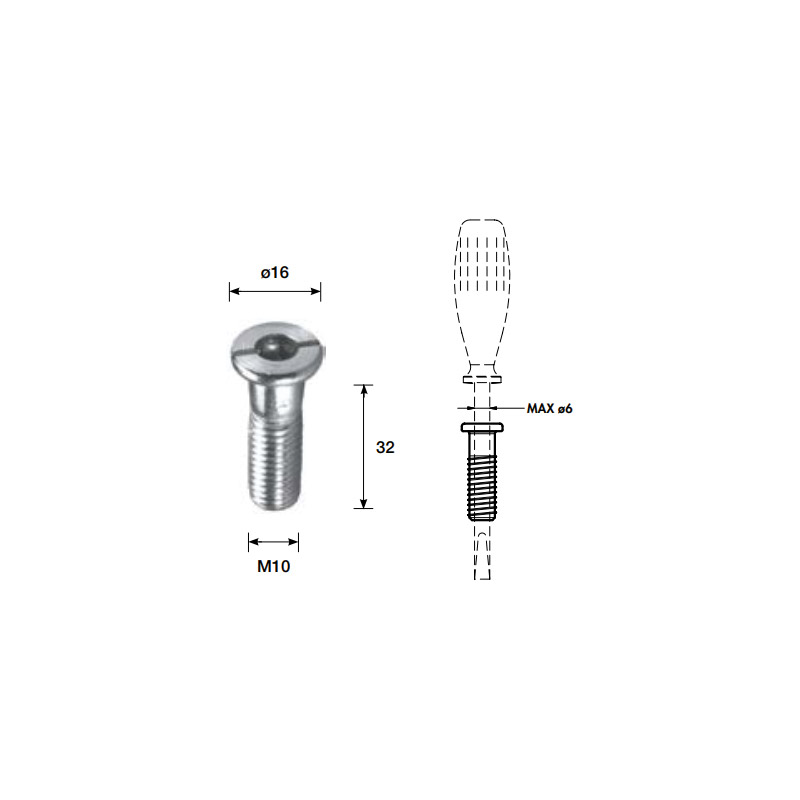 Vis creuse pour fixation à travers le fond du meuble, fileté M10. Convient pour pieds ref 040 04480 10002, 040 14480 10002, 040 14480 12002, 040 14480 15002. PIEDS MÉTAL Vendu à l'unité